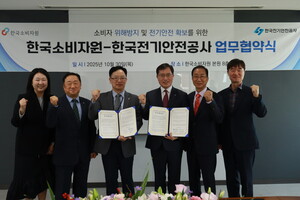 전기안전공사와 한국소비자원이 소비자 전기안전 확보를 위한 실질적인 협력에 나선다.한국전기안전공사(사장 남화영)는 10월 30일 한국소비자원(원장 윤수현)과 전기안전분야 상호 협력을 위한 업무협약 부속합의를 체결했다고 밝혔다.이날 자리는 지난 2017년 양 기관이 맺은 ‘전기안전분야 상호 협력을 위한 업무협약’의 세부 추진 사항을 정하기 위해 마련됐다.이번 부속합의를 통해 양 기관은 전기안전분야에서 발생할 수 있는 사고로 인한 소비자의 신체 및 재산상 피해에 신속하게 대응하고, 사전예방을 위한 공동 캠페인 등을 추진하는 세부 사업에