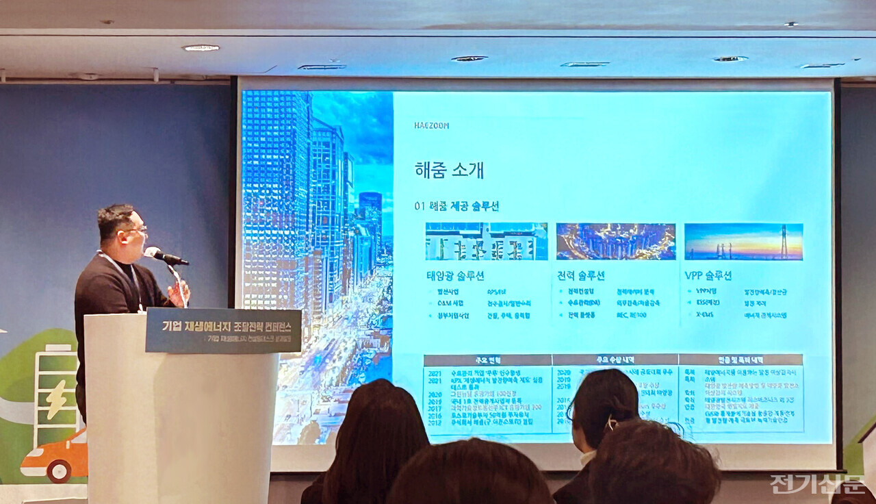 에너지 IT기업 해줌(Haezoom, 대표 권오현)은 재생에너지 활용전략 컨퍼런스에 참석해 RE100 컨설팅 우수사례를 발표했다고 7일 밝혔다.