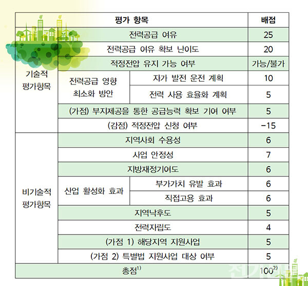 항목별로 ▲전력공급 여유(25점)가 가장 높은 배점을 점유한 가운데 ▲전력공급 여유 확보 난이도(20점) ▲전력공급 영향 최소화 방안(자가발전계획 10점, 전력사용효율화 계획 5점) 등도 점검기준에 포함됐다.