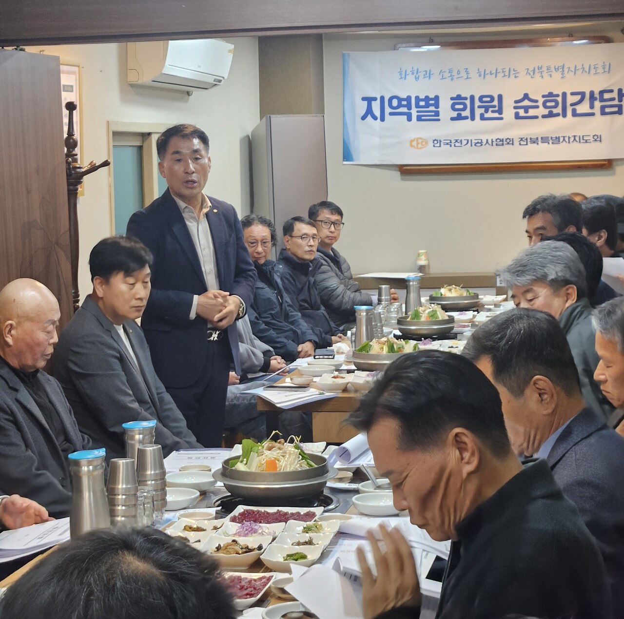 한국전기공사협회 전북특별자치도회(회장 이재수)는 지난 12일 정읍시 지역 회원을 대상으로 ‘2025년도 회원 순회 간담회’를 개최했다.