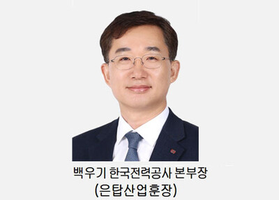 에너지공급자 효율향상지원 의무화 제도(EERS) 도입을 추진하고 에너지 캐시백 확대를 추진한 백우기 한국전력공사 영업본부장이 은탑산업훈장의 영예를 안았다.
